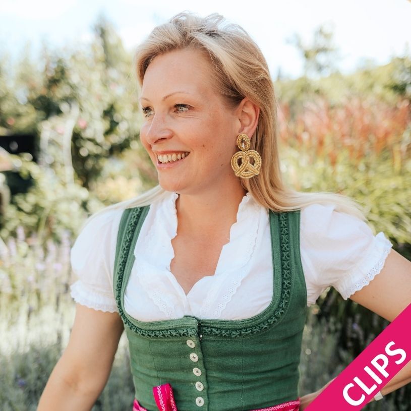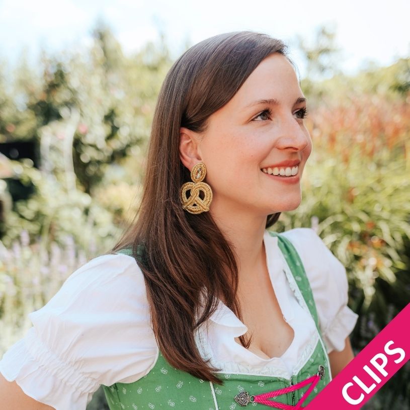 Diese goldenen Soutache-Brezeln sind nicht nur ein eleganter Ohrschmuck für besondere Anlässe, sondern auch eine ungewöhnliche Ergänzung zu modernen Outfits. Gleichzeitig passen sie perfekt zu festlichen Momenten wie der Wiesn oder dem Oktoberfest, wo sie als verspielte und zugleich edle Trachtenohrringe für ein Highlight sorgen. Mit ihnen gibst Du Deinem Dirndl-Look einen extravaganten Twist, der garantiert auffällt.