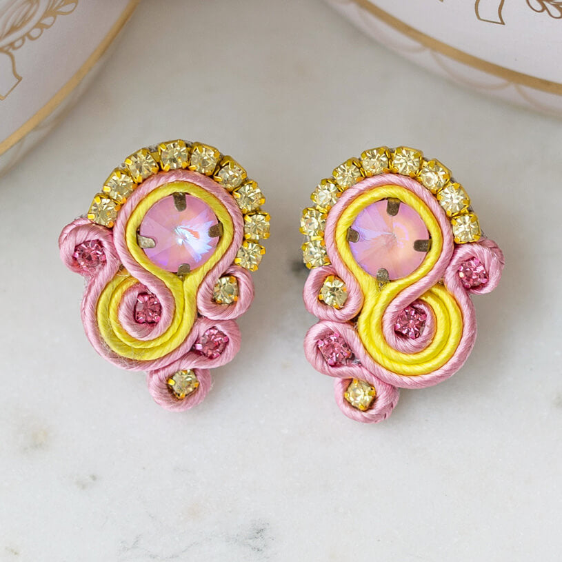 Diese zauberhaften Soutache-Ohrringe in Rosa und Gelb sind ein echtes Highlight für Deinen Ohrschmuck. Mit ihrer außergewöhnlichen Farbkombination aus zartem Rosa, frischem Gelb und funkelnden Details ziehen sie alle Blicke auf sich – und bleiben dennoch angenehm leicht zu tragen. Die Designer-Ohrringe vereinen auffällige Eleganz mit filigraner Handarbeit und lassen sich sowohl zu besonderen Anlässen als auch im Alltag wunderbar kombinieren.