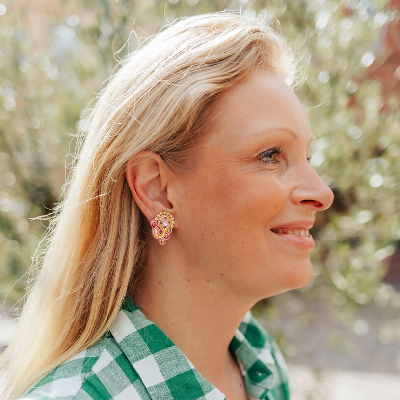 Dank der hochwertigen Verarbeitung kannst Du Dich auf lange Tragefreude verlassen. Die feine Soutache-Technik, bei der bunte Zierbänder kunstvoll vernäht werden, verleiht jedem Paar eine extravagante, individuelle Note. Die kleinen Kunstwerke schmiegen sich sanft an Dein Ohr an und fühlen sich dabei so leicht an, dass Du sie kaum spürst – selbst nach vielen Stunden.
