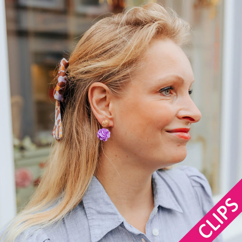 Das Highlight dieses Statement-Ohrschmucks ist jedoch zweifellos der Pompom am unteren Teil: Aus weichem Stoff gefertigt und in einem zarten Fliederton gehalten, erinnert er an kunstvoll gefaltete Blütenblätter – fast wie eine kleine Rose, die unter Deinem Ohr schwebt. Dieser ungewöhnliche Materialmix macht die Ohrringe so charmant und extravagant. Sie sind ein echter Eyecatcher: Auffällig, aber niemals aufdringlich.