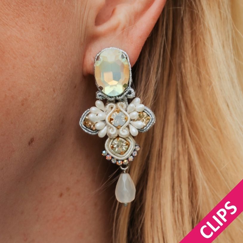 Diese außergewöhnlichen Soutache-Ohrclips in Weiß und Silber sind ein kleines Kunstwerk für Deine Ohren. Sie wurden mit größter Sorgfalt und viel Liebe zum Detail von erfahrenen Kunsthandwerkern gefertigt. Jeder Handgriff ist spürbar, wenn Du die feine Verarbeitung betrachtest: seidige Soutache-Bänder, kleine schimmernde Perlen und funkelnde Steine verschmelzen zu einem harmonischen, eleganten Gesamtbild.