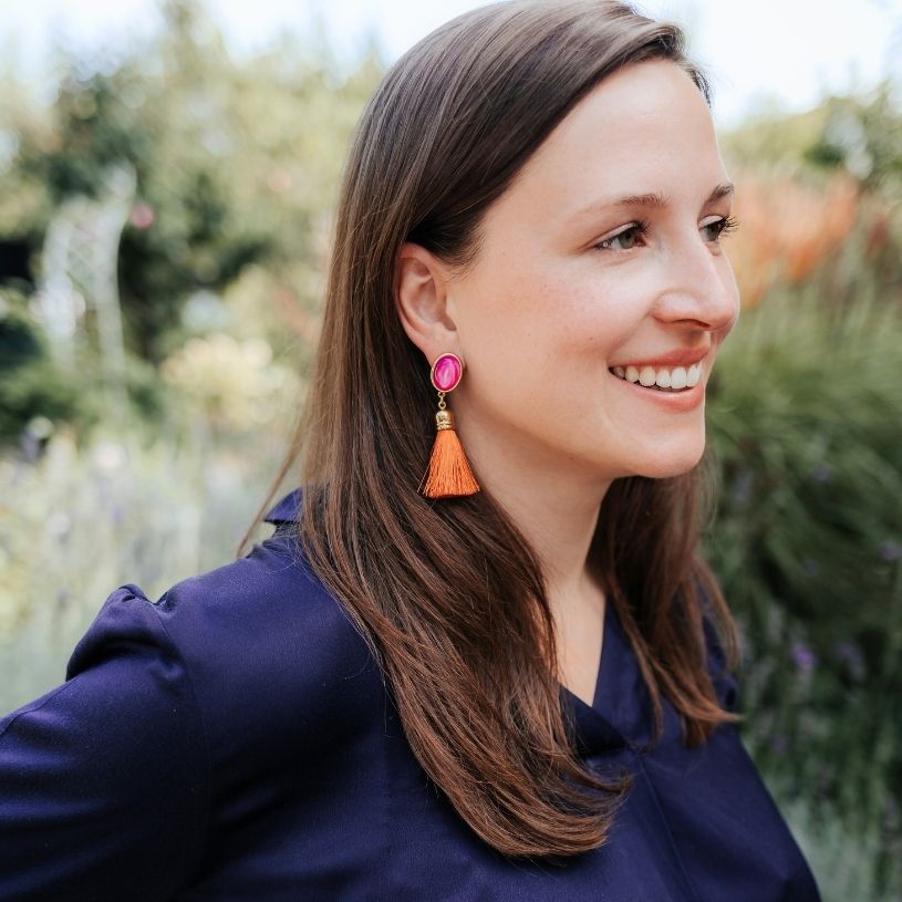 Schimmernde pinkfarbene Ohrstecker mit Quaste in Rostorange von AmuseToi