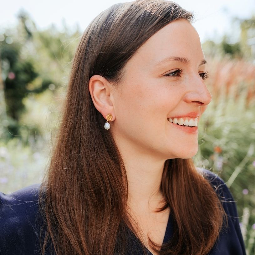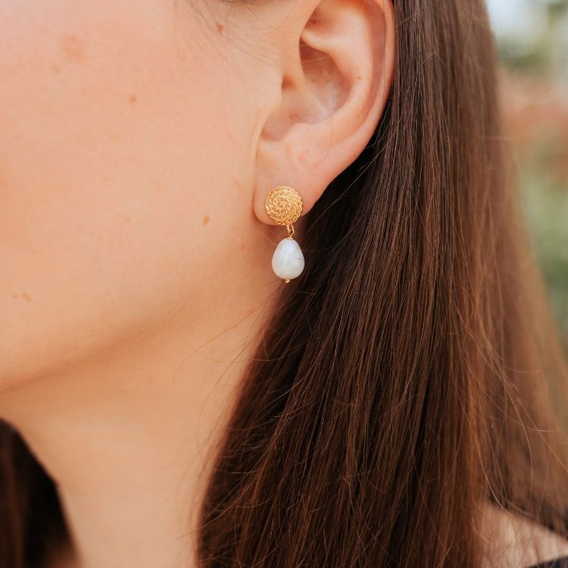 Gewichtjestückingramm | ca 2, Metall: Messing, vergoldet, Stecker: Messing vergoldet, Süßwasserperle |