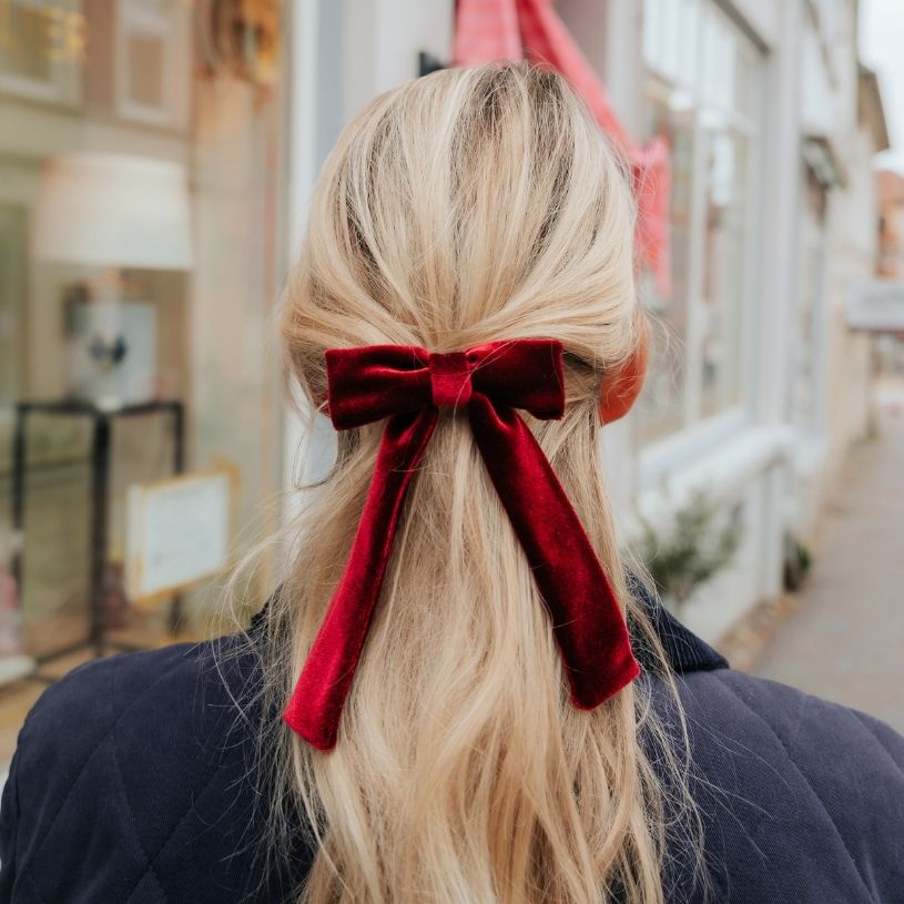 Durch die Kombination von hochwertigem Material und exzellenter Handarbeit entsteht ein Accessoire, das Eleganz und Extravaganz vereint. Die samtige Oberfläche schimmert in einem eleganten Dunkelrot, der sich perfekt in verschiedene Outfits einfügt und dennoch als raffiniertes Statement hervorsticht. Ob zum Abendkleid, zum Business-Look oder als Highlight eines lässigen Outfits - diese Schleifen-Haarspange wird zum zauberhaften Hingucker und verleiht Deinem Look eine besondere Note.