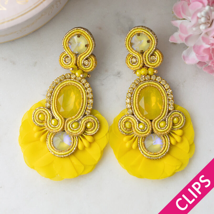 Diese außergewöhnlichen Soutache-Ohrclips in zartem Hellgelb sind ein wahres Highlight für alle, die besonderen Ohrschmuck lieben. Sie verbinden kunstvolle Handarbeit mit einem Hauch von Extravaganz und zaubern einen eleganten, fast märchenhaften Look – perfekt, um Deinem Outfit das gewisse Etwas zu verleihen.